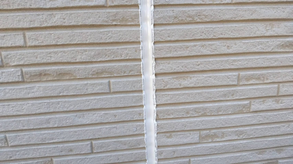 外壁材のつなぎ目を埋めているゴムのような部分は、雨水の侵入を防ぐ大切な役割があります。ここが傷んでくると、雨水が入り込む原因になってしまうため、塗り替えと一緒に新しくやり直す工事が重要です。現地で状態を確認したうえで、必要な直し作業も含めた工事をご提案しました。